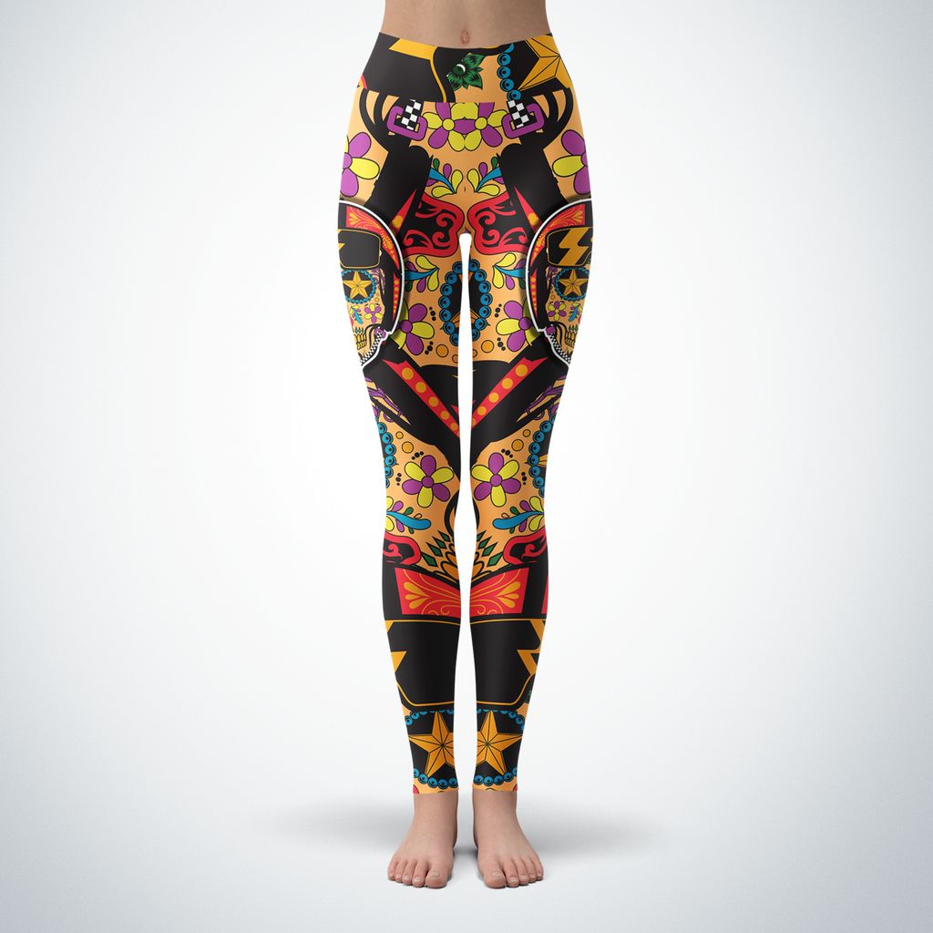 Biker Sugar Skull Leggings